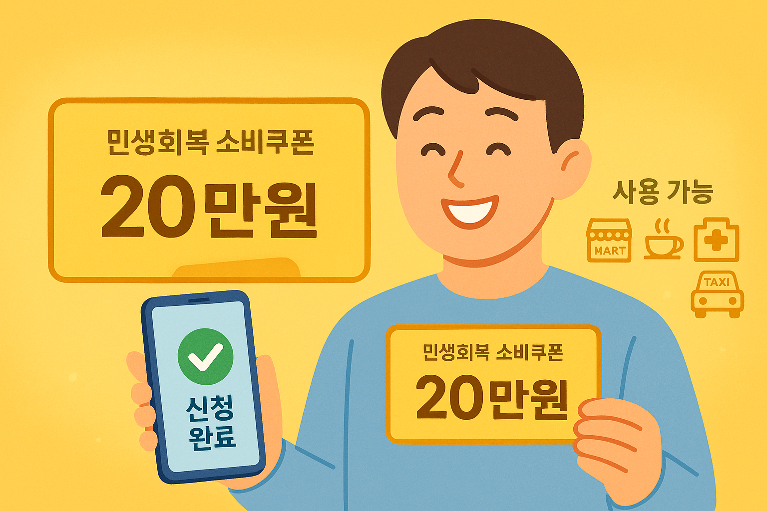 경기 회복과 내수 활성화를 위해 정부가 추진하는 민생회복 소비쿠폰! 1인 최대 20만원 지원, 전국민 90% 이상이 수혜 대상입니다. 본 포스팅에서 2025년 민생회복 소비쿠폰의 신청 일정, 자격, 신청방법, 사용처, 유의사항을 빠르고 쉽게 정리해드립니다.