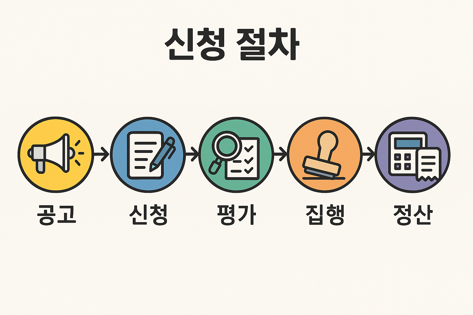 - 집행·정산: 지정 절차에 따라 계약·납품·검수·정산, 결과보고서 제출