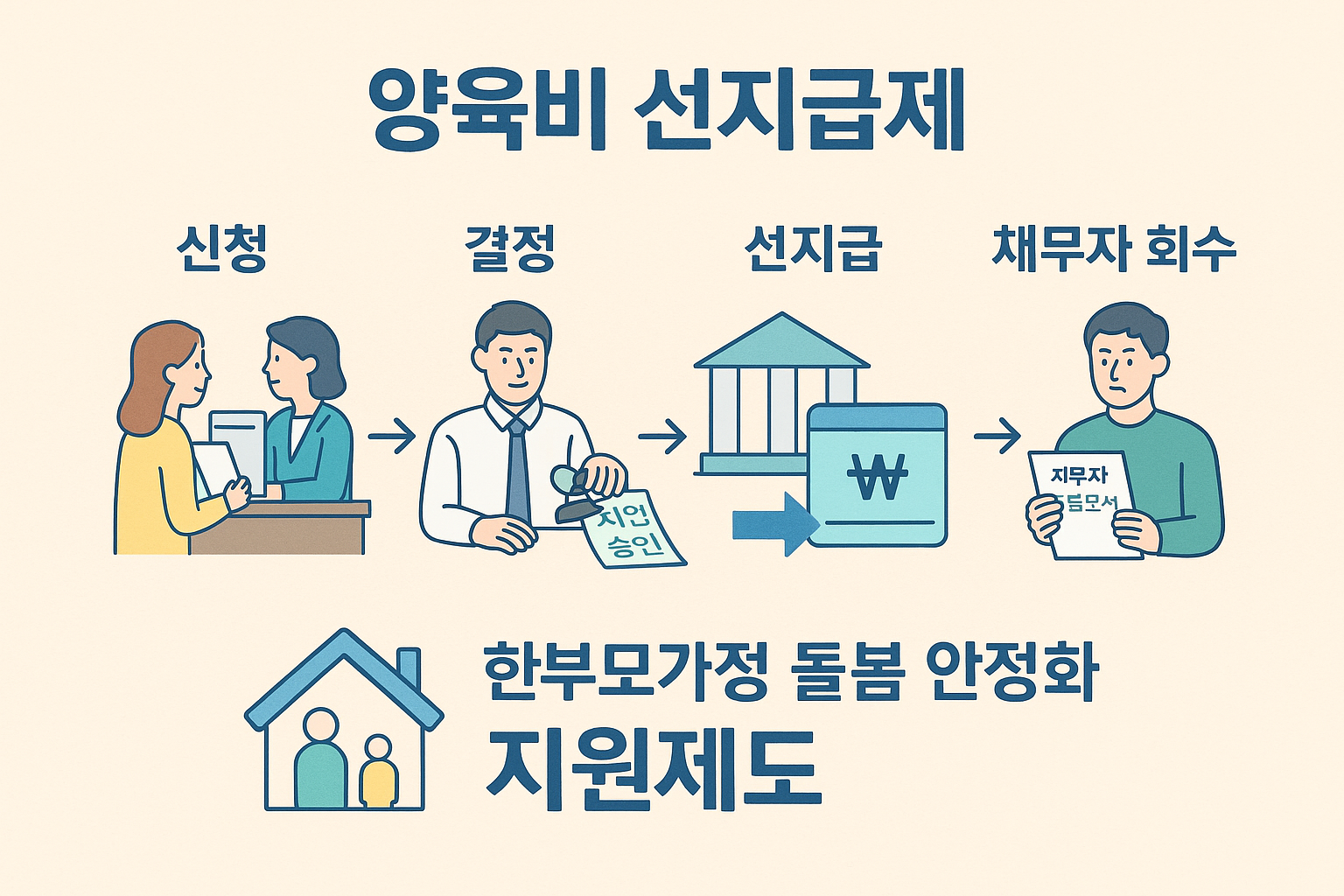 양육비 선지급제는 비양육부·모의 미지급으로 양육비를 받지 못한 경우 국가가 먼저 지급하고 사후에 채무자에게서 회수하는 제도입니다. 2024년 법 개정과 후속 준비를 거쳐 2025년 7월 1일부로 시행되었으며, 여성가족부·양육비이행관리원이 집행을 담당합니다. 하반기 복지 변화의 핵심 과제인 ‘돌봄 안전망 보강’을 대표하는 장치로, 신청·지급·회수 전산체계를 통합해 처리 속도와 회수 효율을 높인 것이 특징입니다.