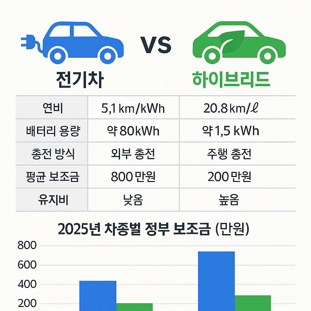 2025년 전기차·하이브리드 보조금은 “고성능·고효율 중심”으로 재편되었으며, 보조금 금액 자체보다 차량의 친환경성과 유지비 절감 효과가 중요해졌습니다. 전기차는 주행거리와 충전성능이 우수할수록 보조금을 더 많이 받을 수 있고, 하이브리드는 점차 보조금 대신 세제 혜택 중심으로 전환되고 있습니다.