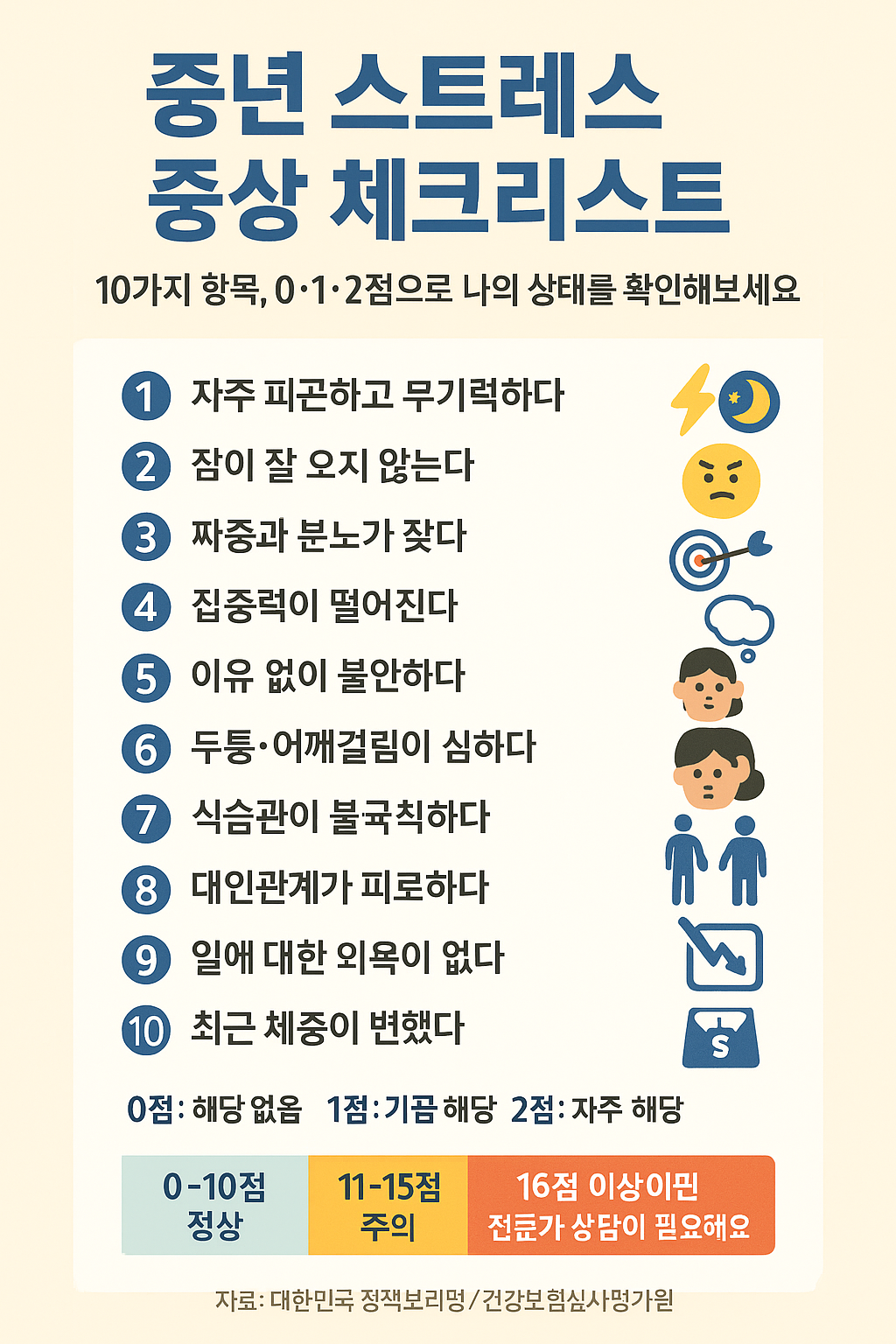 “중년이 꼭 알아야 할 스트레스 증상 체크리스트 10가지”