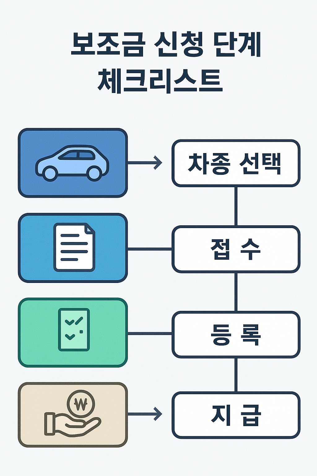 - 지자체 접수 → 차량 등록 → 보조금 지급(지자체 공고 절차 준수[4]).